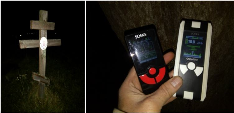 В появившемся сильном волнении я довольно долго выуживал их из противогазной сумки, но когда достал, успел увидеть на экранчиках существенно высокие показатели, которые светились красным цветом. Успел показать эту картину своим спутникам. А вот когда собрался сфотографировать и полез за телефоном, приборы одновременно, как и начали, затихли.. На фото 2 вы можете видеть их в этот момент, но ничего особенного уже не показывают.